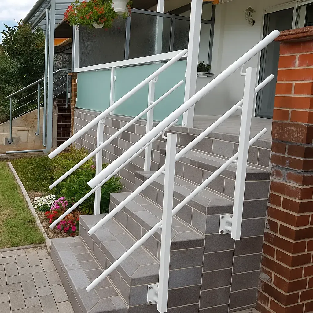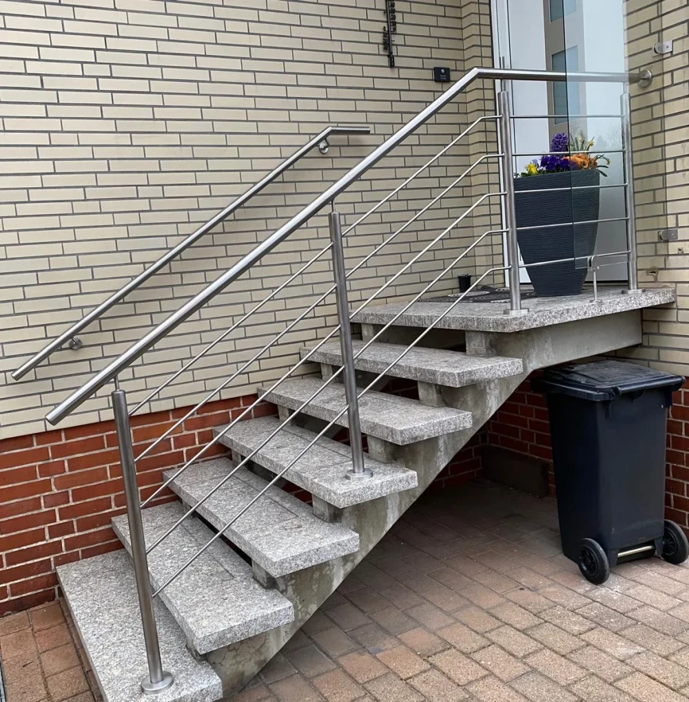 - Geländer & Handläufe: Aus Stahl, Edelstahl oder pulverbeschichtet, auf Wunsch mit Glaselementen